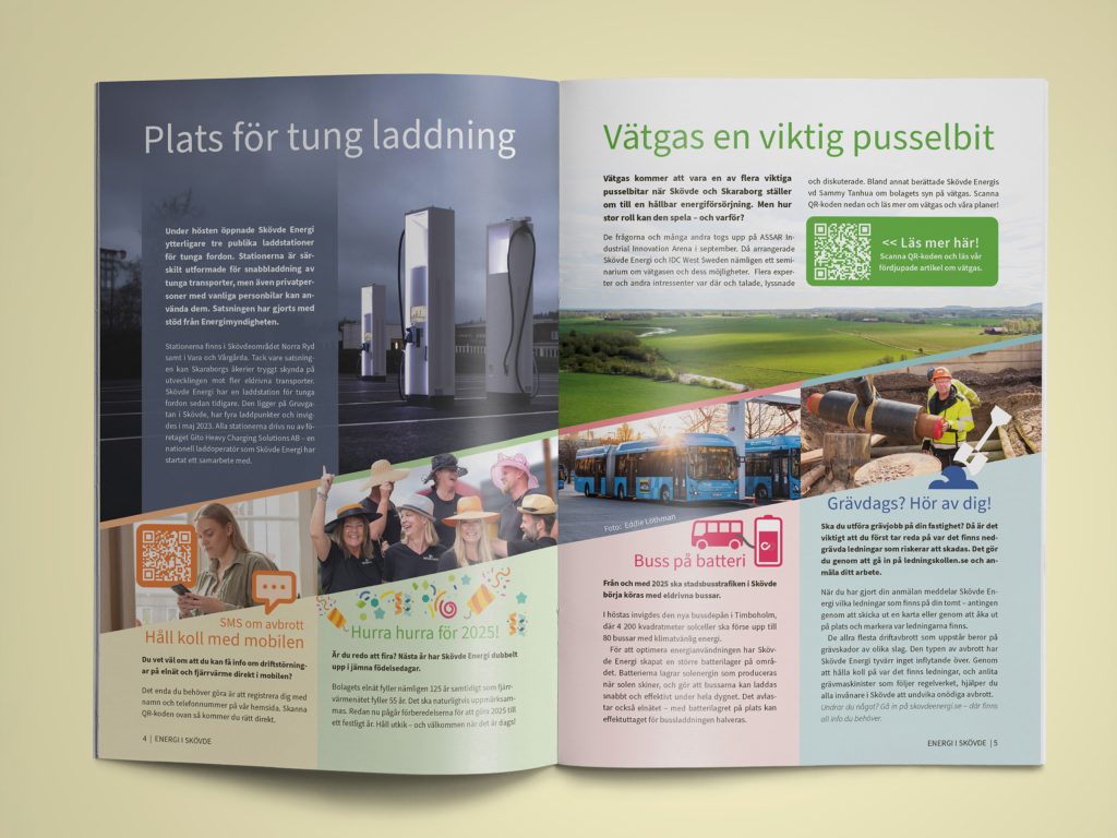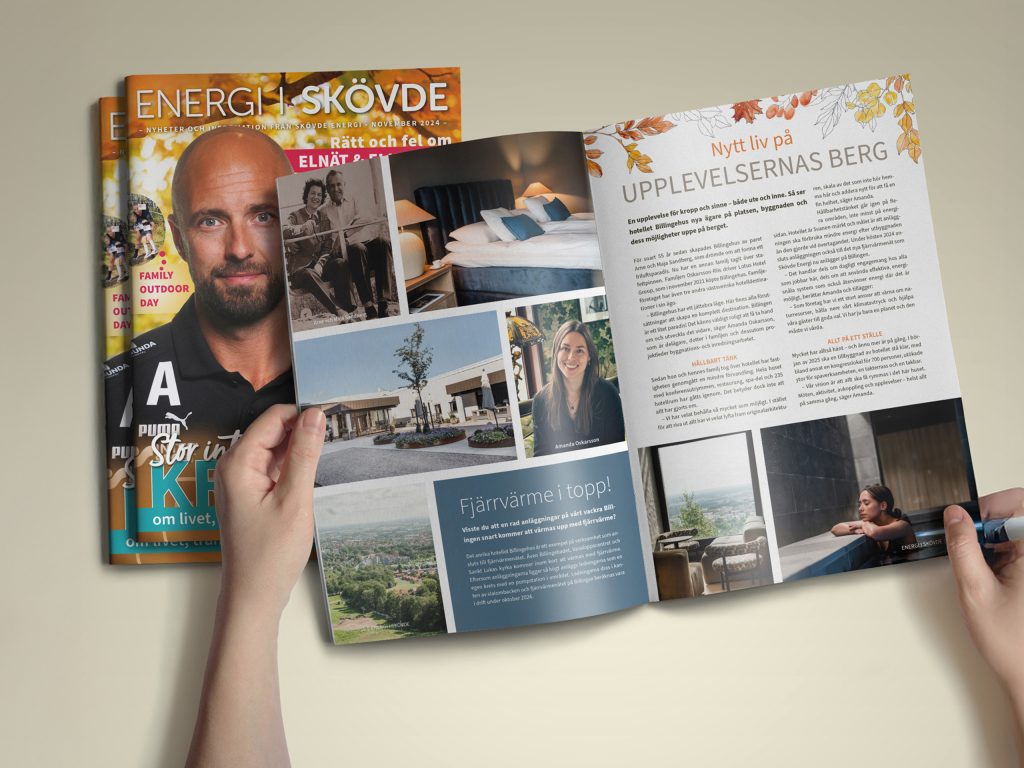 Vi är så glada över att få ta fram Energi i Skövde som är Skövde Energis kundmagasin och totalutdelas till alla hushåll i Skövde Kommun (30 000 ex). Från planering till formgivning och trycklämning arbetar vi hårt med att hålla en röd tråd och verkligen producera ett magasin som känns lättläst, matnyttigt och framförallt inspirerande och lärorikt för så många som möjligt.